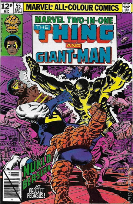Ben, Quasar, Bill Foster, and some other Pegasus staff are playing poker when an emergency alarm goes off. Quasar goes one way, and Ben and Bill Foster take the elevator down. The elevator starts to reverse direction, and Ben and Bill are in danger of being squashed flat when Bill reveals himself to be the super-hero Black Goliath. Between the two they stop the elevators (the problem is, we learn, Nuklo playing with it far below) and Foster decides to change his name to Giant-Man at Ben's suggestion. Quasar gets to the levels below far in adavnce of the other two, where he learns that Project Pegasus' nuclear reactors, kick-started by the presence of Nuklo and some apparent sabotage, are about to go critical...Elsewhere, Thundra loses her first professional wrestling match to Titania, thanks to a well-executed drugging.