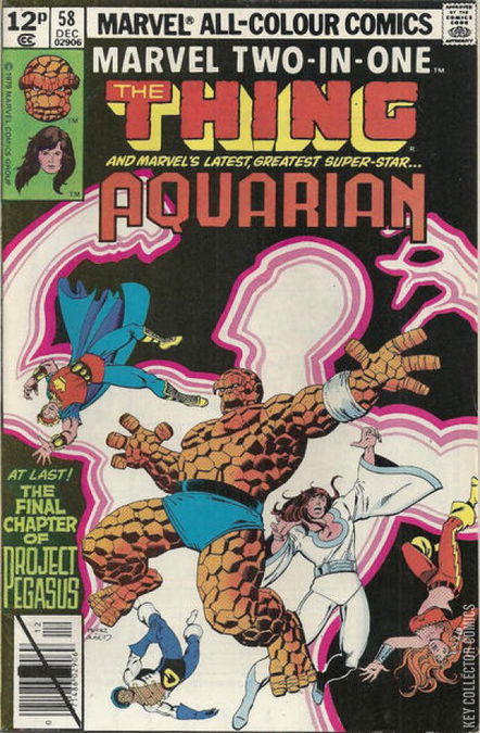 As Ben is about to be brain-fried by Klaw, Klaw is mysteriously disincorporated back into his sonic claw. We see standing over him a recostumed Wundarr, now self-named the Aquarian and fully reborn with a functional adult mind thanks to the Cosmic Cube. It was the Aquarian's power-inhibiting null-field that has shut down Klaw.After taking care of the injured Giant-Man and Quasar, and seeing to the reimprisonment of Solarr and Klaw, the two head for a spatial distortion down below that the Aquarian has been sensing. It turns out to be Dr. Thomas Lightner, now in the form of a giant man-shaped hole in the air which seems to be sucking everything near it into it. Lightner now calls himself the Nth Man. Throwing things at him just results in his absorbing them (and growing larger). The Aquarian tries to shut him down with his null-field, and it seems on the verge of working, svae that in doing so he's shutting down the life support systems and killing Ben and everyone else.Thundra has escaped during all this, and Giant-Man and Quasar are up out of their sickbeds and coming down to see whats up. All five meet near the Nth Man (and Thundra offers her help), but their best efforts seem hopeless...