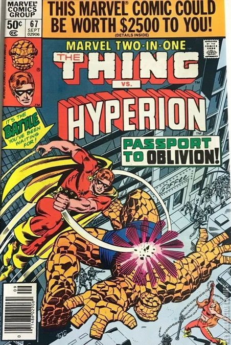 Ben drops off the Serpent Crown at project Pegasus for safe-keeping, and sits down for a meal with Giant-Man and Quasar. Over the course of the conversation, the issue of Thundra and her investigation into the people who had hired her to sabotage Project Pegasus comes up. No one has heard from her since she left.Thundra, with Hyperion in tow, is about to enter MetroBank, a subsidiary of the people who had hired her. She and Hyperion discuss their respective histories as they come in, and they soon learn that the Nth Project (the people who had hired her) do have a way to get her home: the Nth Projector. The Nth Projector is a device that will project things from one reality into another. It should be not only possible but easy for the Nth command to send Thundra back to an alternate version of her homeworld, one which was not destroyed...While this is going on, Ben has returned to the Baxter Building, and become convinced by Reed Richards to go make up with Alicia. As Ben approaches Alicia's apartment, flowers in hand, Alicia is leaving arm-in-arm with another man.Thundra, meanwhile, has stolen the Nth Projector, and after a brief squabble she and Hyperion are on the run together for the Baxter Building. Hyperion runs into Ben right outside the building, and, not recognizing him, starts a fight when he shoves him out of the way...