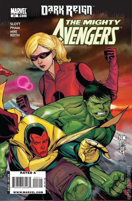 EARTH'S MIGHTIEST PART 3 - THREE WORDS Broxton, Oklahoma, and Asgard are surrounded by nothingness. Loki tells Thor that she is trying to contact the outside world, but to no avail. In the caves beneath Mount Wundagore, Hank Pym, aka The Wasp, and Iron Man are arguing about who should lead this new team. Pym points to all of Stark’s recent missteps as evidence that he's unfit, but Stark fires back that Pym can’t lead simply because of who he is. Iron Man orders the others to bind Modred in iron and do what it takes to keep Bruce Banner from Hulking out. Bova reveals to the team that Chthon has taken over Quicksilver’s body and Pietro’s consciousness is trapped inside the Darkhold. Iron Man says that if they take Chthon out, all of the strange events around the world will snap out of existence. Amadeus Cho then radios in to Wasp (using an Ant-Man helmet he crafted from spare parts in Pym’s lab) with some bad news - a “tidal wave of tentacles” is closing in quickly on Wundagore. Iron Man tells US Agent and Hercules to help him put an end to this, and orders Pym to get the rest of the team and Modred to safety. Dejected and angry, Pym concedes. Chthon approaches the outskirts of the town on the tentacle tidal wave as Iron Man, Hercules, and US Agent begin destroying Mount Wundagore, which Stark has determined is the source of Chthon’s magic. Amadeus is aghast at Stark’s plan given that the mountain is full of enough volatile uranium to destroy the entire town. As Chthon begins to draw power from the fear and chaos he sows, Scarlet Witch’s astral form appears and whispers to Bruce Banner, prodding him to turn into the Hulk. Hulk smashes Chthon, which buys Wasp time to devise a plan. Pym and Amadeus use the Ant-Man helmet to scramble the language center of Quicksilver's brain, rendering Chthon incapable of uttering the right words to cast the spells necessary for his magic. The other Avengers begin to pummel Chthon, but Modred escapes his bonds and begins a ritual to make himself the new host for the chaos god. On a hunch, Amadeus has Vision read aloud from the Darkhold, whose pages are now full of the words that Quicksilver’s consciousness has written in order to communicate. This causes the text to disappear, leaving the magical book searching for its original text - the very text that Modred grafted to his body in the ritual that initially released Chthon. Modred and Chthon are both drawn back into the Darkhold, ending the crisis and putting the world back to normal in the blink of an eye. As the dust settles, the team tries to decide what comes next. Iron Man flies off, leaving these new Mighty Avengers in Wasp’s hands. Hulk and Quicksilver also elect to each go their separate ways, Hulk to be left alone and Pietro to uncover the secrets of the chaos magic that could reveal where his sister is. Scarlet Witch suddenly materializes and whisks all but Pietro away, leaving a stunned Quicksilver behind. News reports the next day credit Hank Pym for saving the world, the first step towards restoring Pym’s public reputation after the Skrull invasion. Meanwhile, the citizens of Broxton and Asgard celebrate their return to this plane of existence. While Thor gives credit to the new Mighty Avengers, Loki grins into a mirror; the reflection grinning back is that of the Scarlet Witch. Loki could not allow another chaos god to claim the world for his own, so she once again created a team of Avengers for herself.