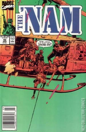 Home / Marvel / Nam, The / Nam, The #42 Marvel Released March 1990 Nam, The #42 Add to Collection Want It Synopsis Inquiry Issue 42 of 84 Add to Collection Buy it on eBay Buy on eBay Low $1 Mid $2 High $3 Synopsis Inquiry Details Series Nam, The Cover Date March 1990 Pages N/A UPC N/A Cover Price $1.50 Final Order Cutoff N/A Creators Writer Doug Murray Artist Wayne Vansant Price Guide Log in or subscribe to access detailed graded price information and market insights. Log In Subscribe