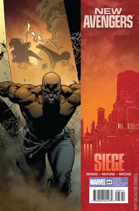 SIEGE PART 3 The New Avengers, with Nick Fury and the recently reborn Steve Rogers as Captain America and leader of the team, are fighting with the Asgardians against Norman Osborn and his team of Dark Avengers. Luke Cage pounds Venom before he can attack Rogers, then gets blasted away by Osborn. Cage lands on a tower and sees a small Asgardian girl with brown hair. Flashing back to yesterday, Cage and his wife Jessica are coddling their baby Danielle. They discuss issues about Rogers coming back from the dead to lead a revolution against Osborn and whether Jessica will return to being a superhero. In the present, as the Hood's gang enters the chaos. Ronin takes down Chemistro before assisting Mockingbird. Yesterday, Mockingbird wakes up from a strange dream and decides to go out on patrol. Ronin follows, trying to find out what's wrong. The two encounter Lady Octopus and work together to take her down. In the present, the Sentry flies through Asgard, destroying it and sending it crumbling to the ground. Amidst the destruction, Ronin cries out for Mockingbird. The last image is a hand pinned down by rubble.
