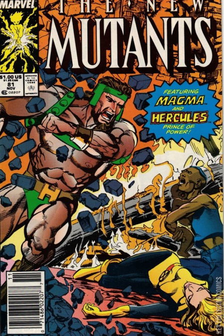 Note: This is a 'filler' issue with a one-off flashback story. The continuation of the Asgard story featuring the New Mutants is one-issue later in New Mutants # 82. There was a wedding inside a catholic church in South America. Magma stood overlooking the town from the mountainside. She thought about how her own religion was considered barbarian yet it also had roots in Rome. Transforming into Magma, she began to reshape the ground around her when Empath arrived. He wore a suit and had arrived fresh from the marriage ceremony where he had been a guest. As they walked back towards Nova Roma Empath called the Nova Romans pagan. To retaliate Magma asked him to prove the power of his God. When Empath was unable to provide evidence of God, she began to recall a story of when she had met one of her Gods. At a time before Karma had left the New Mutants, Magma still attended Xavier's School for the Gifted and Cypher was alive, the whole team had gone to the cinema. They laughed at the terrible acting from the Hercules film, and Warlock took an interest in the tacked-on romantic sub-plot. As they left the cinema the other continued to joke and play around. However, Magma began to feel quiet & lonely. That night she retired to her bedroom, lit the incense and began to pray to the Gods of Olympus for guidance. A might breeze poured through the open window and a clap of thunder heralded the arrival of Hercules. He stood in the open window, towering in the shadows. At first he greeted Magma in Latin and she was over-joyed to be in his presence. However, when she switched the light on she was shocked and angered to see that it was the same man who had been in the terrible movie she'd seen earlier that afternoon.Magma woke the other New Mutants, angrily pounding on their bedroom doors demanding an apology. Magma believed that they were playing a practical joke on her, but the others were just as astounded to see Hercules there as she was....