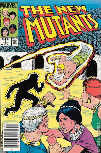 The New Mutants are captured by Roman legionnaires, taken to Nova Roma, and drugged! The auction blocks await Wolfsbane and Psyche, but for Cannonball and Sunspot it's the arena! -1st appearance of Selene Gallio (later becomes Black Queen)
