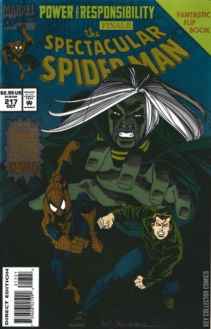 POWER AND RESPONSIBLITY PART 4 - HIGHER GROUND Having come to the Ravencroft Institute to observe the psychology of super-powered individuals, the mysterious Judas Traveller has found himself facing a once in a life time opportunity: The chance to compare the psychology of a Spider-Man and his long lost clone, Ben Reilly. With the two Spider-Men side-by-side, Traveller uses his powers to make both men lose conciousness. While outside, a barrier prevents the authorities and the press from seeing what is happening inside. Among those gathered are Doctor Ashley Kafka, her assistant Edward Wheland, and John Jameson, Ravencroft's chief of security. They still don't understand why a renowned psychologist like Traveller would take control of the facility. Likewise, they are concerned about Traveller's threats to either kill the patients or unleash them upon the public. Back inside, Judas as turned attention away from the Spider-Men to observe Cletus Kasady, aka Carnage. He finds the symbiosis between a serial killer and an alien creature fascinating. His observations are interrupted by Boone and Medea who inform him that they have placed the Spiders in the basement. Judas instructs Mister Nacht to get into place to observe the experiment. That's when the Scrior warns Judas that the barrier outside is pushing his powers to the limits. He then tells Chakra to release the prisoners, as he had no intention of ever killing them. When Spider-Man and Ben Reilly wake up in the basement, the wall-crawler attacks his duplicate, thinking he is involved with Judas Traveller. Spider-Man thinks that this is yet another ploy to drive him mad. Ben tries to convince him otherwise, as when Spider-Man states that he had his powers back in junior high, Ben reminds him that Peter Parker didn't get his powers until high school. This angers the wall-crawler, who tells the clone to stop calling him Peter, insisting that he only is Spider-Man. Ben wonders what is wrong with Spider-Man, who is grimmer and has a darker attitude than the clone remembers. Before he can get any answers, a group of Ravencroft inmates comes crashing into the room. When Spider-Man savagely attacks them, Ben pulls him away. He tries to remind the wall-crawler that he is a hero, but Spider-Man tells the clone he has no idea what tragedies he has recently endured. Ben tells Spider-Man that if the life of Peter Parker is so painful, he will gladly take him. When Spider-Man refuses, Ben begs Spider-Man to work with him to get the situation under control. Hearing this, Mister Nacht returns upstairs to tell Judas Traveller that the Spiders are working together now. That's when Medea asks if she can eliminated them, but Judas tells her to be silent. That's when Chakra enters the room with an envelope she found that was post marked from a week ago. Judas explains that it is yet another deception integral to the game that they play. With time growing short, Traveller tells the Scrior to shut down the force field and that the rest prepare for their imminent departure. Outside, Ashley Kafka and the others witness as the energy barrier goes down. They are then overwhelmed with knock out gas making everyone outside falling asleep. Meanwhile, Mary Jane is on a flight to Pittsburg to visit her family. During the flight, she is recognized by her seatmate from her role on "Secret Hospital". As she keeps up her end of the conversation, she can't help but worry about everything her husband Peter is going through. Suddenly, Mary Jane feels sick and she rushes to the washroom to throw up. Back at Ravencroft, the two Spider-Men have fight off the the gang of inmates that ambushed them. Running upstairs to get out of the basement, they are barred by a lunatic named Wild Whip. When Ben Reilly recognizes the villain, Spider-Man realizes that his clone operated as a hero in the past. Ben admits that there were some momentary exceptions to his self-imposed exile. lthough they are ambushed, the pair manage to knock out Wild Whip, but not before Ben notices how out of practice he is. At the top of the stairs, they find Carnage waiting for them. At that moment, Judas Traveller leaves a letter in Ashley Kafka's office, finishing the scheme Judas Traveller before he and his allies leave. Back downstairs, Ben points out that they can't let Carnage get past them because he could kill the other inmates. This moment of mercy, begins to make Spider-Man remember everything he used to stand for. Working together, the two Spider-Men manage to knock Carnage out. As they rush upstairs, the pair begin to trade quips as Spider-Man begins to lighten up. Spotting Traveller and his minions making their escape and rush outside. While Spider-Man goes after Judas, his clone has a bone to pick with Boone and Medea. However, when Ben leaps inside their getaway vehicle, he discovers there is nobody inside. Suddenly, the car explodes, apparently killing the clone. Rushing inside to face Judas Traveller, Spider-Man fails to stop his foe who makes him pass out with a hypnotic suggestion. By this point, Kafka and her co-workers wake up and rush inside and find Spider-Man blacked out on the floor. With the prisoners contained again, they begin trying to make sense of the encounter. That's when Edward finds a letter from Judas Traveller, postmarked from a week before. Opening it up, they discover a letter from Traveller stating that he couldn't make it to his scheduled appearance. Falling for this, they wonder who the man they faced really was. At that moment, Traveller and his minions are driving away in a limo. Inside the car, Judas congratulates them for a job well done. As Spider-Man appears to be returning to his previous value system, the arrival of the Spider-Clone intrigues Traveller as well. Judas figures both need further observation. Back at Ravencroft, the authorities search the wreckage of the blown up car and find no trace of a body inside. This leaves Spider-Man wondering if this was yet
