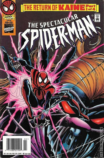 THE RETURN OF KAINE PART 1 - RELUCTANT LAZARUS Kaine wakes up and finds himself in a strange room tied to a chair. No sooner has he come around is he ambushed by five individuals all at once. Moving quickly, Kaine easily frees himself and takes down all of his attackers in a matter of moments. He is applauded by a woman named Shannon Fitzpatrick -- aka Muse -- who welcomes Kaine back to the land of the living. Meanwhile, Spider-Man swings across the city, enjoying every minute of this for the first time since the Jackal stole his life five years earlier. The wall-crawler soon arrives outside the Daily Grind where he works in his alter-ego of Ben Reilly. Changing out of his costume, Ben enters the coffee shop and is shoved out of the way by Desiree Winthrop and her entourage of hangers-on as they rush to her favorite table to discuss fashion. Walking to the front counter, Ben overhears Buzz talking to Jessica Carridine, Shirley Washington and her son Devon. He is opinionating on the dangers of mass media, reminding them of the recent trouble caused by Mysterio's Mystery Vision. When Jessica asks Ben for his thoughts, he tells her that he has nothing against television, and if he had one, he'd watch more of it out of spite. At that moment, at a mansion in Tahiti, James Johnsmeyer is having a teleconference with Mister Wallace, another bankroller of the Great Game to make bets on the current event, pitting their operatives against the assassin known as Kaine. Since Johnsmayer lost the wager that Kaine would die in the opening battle, he agrees to pay up his wager in the bet. Much to the horror of Johnsmeyer's current lover, she is taken away to be given to Wallace in payment. That's when he is contacted by Muse who provides James with an update on Kaine's condition and warns that once he has recuperated he will be making demands as to what is going on. He reminds Muse of the purpose of the Great Game, to pit super-powered combatants against each other for the entertainment of the obscenely wealthy. Muse was Johnsmeyer's operative until an injury took her out of action, hence his desire to recruit Kaine into the Great Game. James concludes his audience with Muse by telling her to make sure Kaine remains comfortable until he can arrive in New York. Later, Muse goes to check on Kaine who wakes up from screaming from one of his precognitive flashes. She uses her hypnotic powers to lull Kaine and explains how she and her allies recovered Kaine from the regeneration chamber that he was recovering in since his recent brush with death. She then takes him to see James Johnsmeyer so he can discuss business with Kaine. Meanwhile, back at the Daily Grind, Ben Reilly notices Desiree Winthrop struggling with her physics homework. Demonstrating that he is knowledgeable on the subject, he offers to help her study. At first, Desiree is snotty with Reilly, until he realizes that Ben knows what he is talking about and gladly accepts his offer. By this time, Johnsmeyer has finished detailing the money that Kaine could make being an official participant in the Great Game. After considering the offer, Kaine turns it down and leaves, no longer wishing to be manipulated by anybody. On his way out, Kaine is confronted by Pierce and Mosh, but they are taken down by Muse who has decided to help Kaine make his escape, the only thing she asks is that Kaine takes her with him. While at that moment, a demolition crew is tearing down an old factory in Brooklyn. When the crew knocks down one of the smokestacks they are shocked to discover the remains of a human body inside. Upon closer examination, they notice that the skeleton is wearing the remains of a Spider-Man costume.