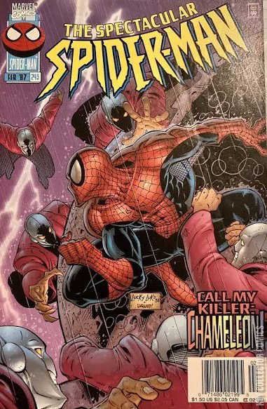 WHO AM I? Shot during the Chameleon's escape from Ravencroft Institute, John Jameson struggles to get up and get help before bleeding to death. His attempts is interrupted by Jack O'Lantern who has come to teach John a painful lesson. Not willing to let himself be a victim to yet another costumed lunatic, John rolls in the snow to recover his gun and shoots Jack point-blank in the head. This shatters the flaming pumpkin that serves as the villain's mask, revealing nothing underneath. Shockingly, a new pumpkin head grows in its place. Kicking the gun out of John's hand, Jack O'Lantern introduces himself, saying that he is not the same man who originally wore the costume. Deciding to help Jameson, Jack pulls out a candle that drips red wax onto John. When the wax lands on John's face, it burns to the touch and pacifies his mind. Meanwhile, in Ravencroft Institute, Spider-Man has been told by Ashley Kafka that he is really a writer named Herbert Smith who constructed Spider-Man as an escapist fantasy after suffering a nervous breakdown. In order to prove this, Kafka has removed Spider-Man's mask, revealing the face of a total stranger, prompting Spider-Man to question his own identity. Reiterating that he is Herbert Smith, Ashley shows him a photo album showing Smith as an accomplished writer who is married his wife Karin and have two children, Kiki and Mitchel. However, the wall-crawler refuses to believe this, insists that this is all some kind of trick being put upon him by the Chameleon. To try and prove this, Spider-Man leaps at a nearby wall to cling to it but is surprised when he falls to the floor instead. Confused and disorientated, the wall-crawler struggles to make sense of the situation. He knows he is married, but not to the woman in the photos and struggles to hold onto the image of Mary Jane in his mind. Kafka tries to dismiss this, saying that "Smith" suffered a mental break down after what happened to his daughter. This causes Spider-Man to have another flash of memory. This time of himself and his wife Mary Jane preparing for the arrival of their unborn daughter. Kafka explains that Herbert and Karen Smith's daughter was hit by a drunk driver. This causes the wall-crawler to break down, accepting that he is Herbert Smith. Seeing that her patient is accepting reality, Ashley Kafka tells him to get some rest and leaves him alone in his cell. It's only once "she" is alone does "Doctor Kafka" drop her disguise. It is really the Chameleon after all, and he begins to gloat over his final victory over Spider-Man. At that moment, the real Doctor Ashley Kafka arrives with the police at the scene where the Chameleon escaped. There she is glad to see that John Jameson is alive and unharmed. Apparently forgetting his encounter with Jack O'Lantern, he is glad to see Ashley is safe. The feeling is mutual and the two give in to their feelings for one another and kiss. After composing themselves, the pair then head off to Ravencroft to figure out what to do next. As they leave, Jack O'Lantern watches from nearby, gloating to Maguire, his pet cat, that John Jameson is now under his control and he will use this to manipulate his father, Daily Bugle publisher J. Jonah Jameson. Back in Manhattan, Flash Thompson is thinking about how Spider-Man's pep-talk has lifted his spirits. After months of feeling sorry for himself, Thompson has decided to put the past behind him and move forward. Unfortunately, as he begins to think about his lot in life makes him feel depressed again and he beging thinking of himself as a loser, just like his father. Giving in to this depression, Flash goes into the fridge and gets a can of beer to drown his sorrows. After taking a sip, Flash decides against giving in to his dispair and tosses the beer out a window. He then calls Betty Brant. Even though it is after midnight, Betty discovers that Flash really needs someone to talk. At Ravencroft, Spider-Man is struggling to remind himself that this is all a delusion. When he looks at the photo album that "Doctor Kafka" brought him, he discovers that the photos inside are not those of Herbert Smith, but those of Peter Parker. However, these images quickly change into those of Herbert Smith and his family. Even though he is being led to believe that Peter Parker's life is a delusion, he can't help but miss the people in the photographs. This causes him to lash out, prompting "Doctor Kafka" to enter the room and check on "her" patient. She tells the wall-crawler that he needs to be sedated and asks him to trust her. Remembering his past with Doctor Kafka, Spider-Man agrees to this at first. However, when "Kafka" gets close enough, Spider-Man grabs "her" and keeps her from injecting him while he clears his thoughts. Fighting the drugs coursing through his system, Spider-Man finally realizes the truth and rips off the Herbert Smith mask he was wearing to confuse him. With his plan falling apart, the Chameleon drops his disguise and tries to flee. However, Spider-Man is furious at being manipulated by his foe again so soon after the last time. Fearing for his life, the Chameleon tries to explain that he was a pawn of the Green Goblin. Now that he knows Peter Parker is really Spider-Man, the Chameleon warns that he could reveal his secret identity to the world. Peter is too angry to care and strikes his foe with enough force to shatter part of his mask. Parker beats the Chameleon, telling him he can tell whoever he wants as he survived worse. Eventually, Spider-Man gets ahold of himself and as he controls his temper, the Chameleon manages to slip away. Outside, the Chameleon flees through the streets of Manhattan, realizing that Peter Parker is everything that he -- Dmitri Smerdyakov -- is not. Tripping over his feet, the Chameleon falls to the ground. As he gets up, he is shocked to see someone who looks to be Kraven the Hunter standing before him. Brandishing a whip and a rifle, Kraven suspects that Dmitri has botched yet an