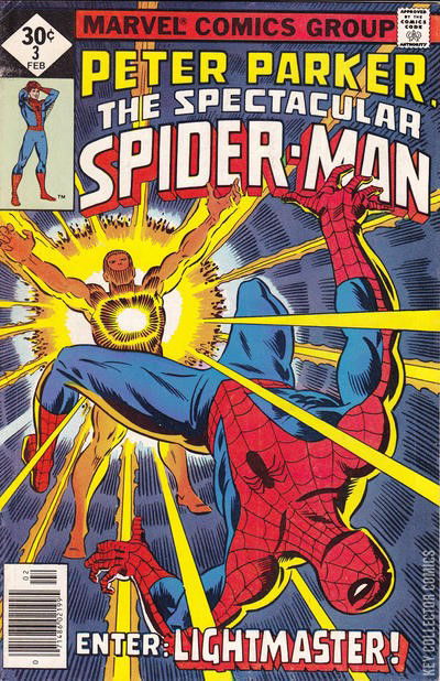...AND THERE WAS LIGHTMASTER! While out on patrol looking for the Tarantula and seeking to rescue Chancellor Gorman, Spider-Man saves an old man from a mugging. Meanwhile, the Tarantula revives after being knocked out by his mysterious employer and is about to escape when he is attacked by said employer, who reveals himself as a new costumed criminal known as Lightmaster. Lightmaster then decides to deal with the situation on his own. Spider-Man sneaks back into his apartment when he realizes that Flash and Glory are there, and changes back into Peter Parker and pretends he was sleeping in his room. When they go out for a meal, Flash recognizes one of the waitresses as Sha Shan. As he tries to talk to her she flees and the owner tells them to leave his business. Outside Flash parts company, and Peter suddenly leaves Glory by herself to wonder what's wrong with Flash. Having seen a flash of light at city hall, Peter changes into Spider-Man to check it out. He arrives just in time to see Lightmaster trying to kidnap city controller Goldin. Spider-Man tries to stop the new villain but is bested by his light powers and his eyes are injured as a result. The next day, Peter checks information on the kidnapping at the Bugle where he realizes who Lightmaster is. Traveling to Edward Lansky's home, Peter realizes the truth: That Lansky is Lightmaster. Their fight takes them across the city, where Spider-Man lures Lightmaster into the Palace Theater. There he tricks Lightmaster into shooting his light beams at the electrical grid of the theater, causing his costume to short out and knock him unconscious.