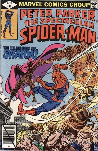ENTER: SWARM! After helping police capture armed robbers, Spider-Man returns to ESU where as Peter Parker, he meets his fellow teachers assistants: Debra Whitman, Steve Hopkins, Chip Martin, and Philip Chang. Meanwhile, in the lab of Professor Morris, Morris and Marcy Kane are examining the skeleton of Fritz von Meyer -- formally the villain known as Swarm, who battled the Champions of Los Angeles. Going to lunch with his new colleagues, Peter visits with Curt Connors who is eating lunch in the cafeteria. Their conversation is interrupted when a swarm of bees suddenly start attacking everyone present. Peter manages to slip away and change into Spider-Man to try and figure a way to the bottom of things. Entering Morris' lab, Spidey learns that the Swarm has somehow come back to life. Rescuing Morris from the Swarm's attack, Spider-Man faces off against the Swarm on his own, but is attacked by a swarm of bees unleashed from the Swarm's body.