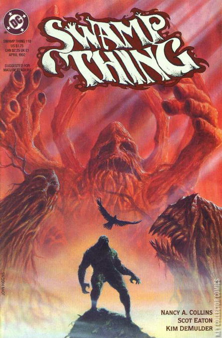 Scot Eaton debuts as the new penciller in "A Child's Garden." Tefe has become a problem child, so Swamp Thing visits the Parliament of Trees for advice. But the kidnapper Bad Man may end Tefe's life before her father's return. Guest-starring Matthew the Raven from SANDMAN. Note: Morpheus' appearance is off-panel but his speech bubble is seen when he calls Matthew.