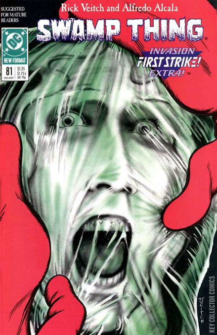After a vivid sex dream, Abby Holland wakes in a tent with Chester Williams to the harsh reality that the home she built with the Swamp Thing has begun to rot and collapse in his absence. They do not understand the significance of this, but they both fear that it may mean that the Swamp Thing is dead. Abby and Chester creep inside the dried out husk of the tree house, when Chester suddenly hears a noise upstairs. They investigate, but find nothing. Convinced that the Swamp Thing isn't there, Abby turns to collect some things and go. Suddenly, an alien intruder slaps some cuffs around Abby's wrists and puts a bag over her head. Elsewhere, at Terrebonne Parish General Hospital a doctor removes the bandages from the newly reconstructed face of TV personality Roy Raymond. After his experience of being trapped in a car with an insane swamp creature, Raymond has given up his cravings for fame and fortune, and believes that he may go back to being a real detective. Suddenly, the press waiting for him outside all rush back to their vehicles and drive off. A nurse informs him that Australia is under full scale attack by aliens. On the alien's ship, Abby's captor receives a communique from the Dominators. The alien called Widowsweed turns out to be a freelance agent in the Dominators' invasion. They thank Widowsweed for having captured Abby, and in doing so, nullified the threat that the foetus she carries inside her poses to them. When Widowsweed realizes that Abby is pregnant, she has a change of heart, revealing to her captive that she too is a mother. Widowsweed ignores transmissions from the Dominators, taking her ship deeper into the swamps, where she finds the derelict craft left behind by her mate many years ago. She is horrified to discover that her mate is dead, and has been for many years. Having found what she truly came to earth for, Widowsweed allows Abby to go free with Chester. She explains that she only agreed to work with the Dominators in the hopes of reuniting with her mate, and now that her hopes are ruined, she has no desire to pursue this mission. She gets back into her ship and begins to fly off. Moments later, Green Lantern Guy Gardner appears before them. He tells Abby and Chester that he has come to recruit the Swamp Thing to help Earth's heroes against the Dominators. Chester and Abby try to obfuscate Swamp Thing's last known whereabouts, but in truth, they really don't know where he is. Guy happens to see Widowsweed's space ship arcing upward above the skyline. Perceiving any alien vessel as a threat at this point, he blasts it out of the sky with a bolt of green energy, much to Abby's horror. Later, Abby decides - despite Chester's protests - to continue living in her rotting tree house, and wait for the Swamp Thing. Inside, she finds the special wedding band that her husband made for her, and it gives her comfort. She is sure that everything is going to be all right.