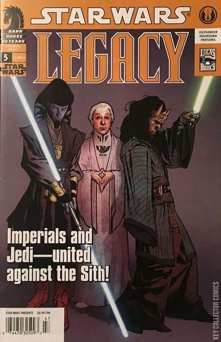 A galaxy-shaking secret is revealed in the heat of battle! Old friendships will be strained to the breaking point, unlikely new alliances will be formed, and the relentless forces of evil will pursue their dark ends with even greater vigor and purpose. In a universe on the brink of either destruction or salvation, it is the actions of an unexpected few that will determine the fates of all. The previously uncharted future of Star Wars takes a surprising turn in this latest issue of Legacy be there!