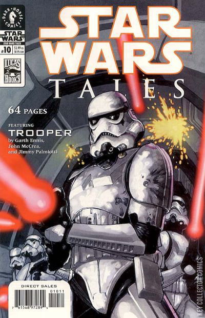 Ever wondered what it would be like to be a stormtrooper? Working for the Empire, never sure where you're going next, following orders without question, ready to lay down your life for the Emperor? Writer Garth Ennis (Preacher, Hitman) and penciller John McCrea (Hitman, Superboy) take us on a journey that shows in agonizing detail what it's like for those troops in white. Also in this issue are New Zealand newcomers Christian Read and Chris Slane offering the story of a Sith Lord, a lightsaber, and a bit of innovation... This and MUCH, MUCH more in an all-new, action-packed Star Wars Tales!