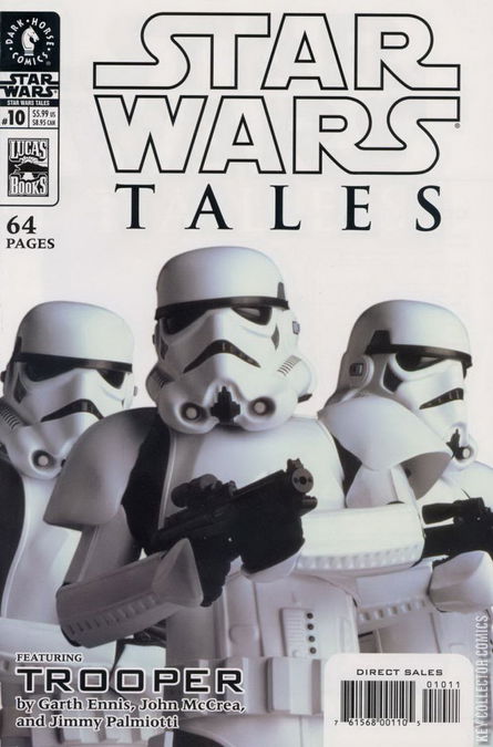 Ever wondered what it would be like to be a stormtrooper? Working for the Empire, never sure where you're going next, following orders without question, ready to lay down your life for the Emperor? Writer Garth Ennis (Preacher, Hitman) and penciller John McCrea (Hitman, Superboy) take us on a journey that shows in agonizing detail what it's like for those troops in white. Also in this issue are New Zealand newcomers Christian Read and Chris Slane offering the story of a Sith Lord, a lightsaber, and a bit of innovation... This and MUCH, MUCH more in an all-new, action-packed Star Wars Tales!