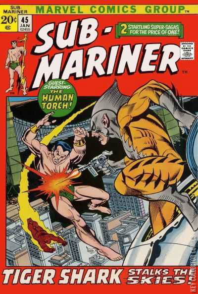 Namor and the Human Torch team up -- or do they? -- to face the vengeful Llyra and the man called Tiger Shark! "When the Light Goes Out!" - reprint short story from Sub-Mariner Comics -1954 series- #42. Written, penciled, and inked by Bill Everett.