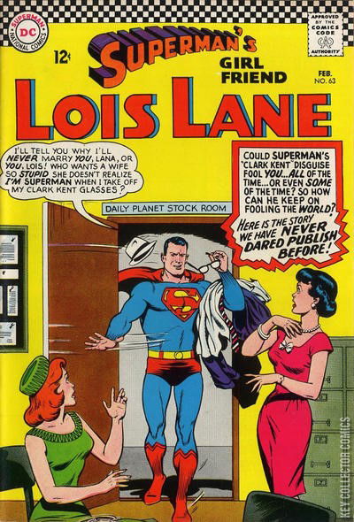 Cover by Kurt Schaffenberger."The Satanic Schemes of S.K.U.L!" (part 1) "Lois Teams Up with Lana" (part 2) written by Leo Dorfman, penciled and inked by Kurt Schaffenberger."The Invisible Handicap!" Public service message written by Jack Schiff."Meet TV's Lois Lane" 1 page full text biography of actress Noel Neill."Cap's Hobby Center" activity page by Henry Boltinoff.Note: Newly elected Senator Perry White turns over his editorial duties to Mr. Van Benson. The story continued in next issue."Could Superman's 'Clark Kent' disguise fool you ... all of the time ... or even some of the time? So how can he keep on fooling the world? Here is the story we have never dared publish before!"Superman: I'll tell you why I'll never marry you, Lana, or you, Lois! Who wants a wife so stupid she doesn't realize I'm Superman when I take off my Clark Kent glasses?