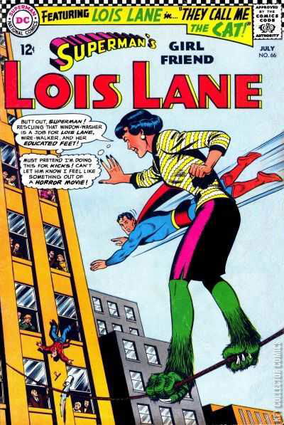 They Call Me the Cat! (Lois Lane, Superman, Jimmy Olsen, Perry White / written by Leo Dorfman) -- 2. "Lois Lane, Witch Doctor!" (Lois, Superman, Lana Lang)Lois Lane: Butt out, Superman! Rescuing that window washer is a job for Lois Lane, wire walker, and her educated feet! (thought) Must pretend I'm doing this for kicks! I can't let him know I feel like something out of a horror movie!