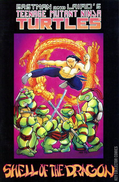 The Shell of the Dragon : Several criminals are discussing their control over the local restaurants. Beancurd, an underling, gloats that all of the eateries in the city are now using the villains' cut-rate spices and frozen foods when his boss, Gorko, angrily interjects that they control all but one... and Gorko wants to mend this situation. Beancurd states the he has a plan to remove this "thorn" from their garden when he's interrupted by a creature that is caged behind the men. It frantically grasps at some spice on the table that the men are seated at. Gorko elbows the beast in the face and knocks it senseless. Another underling asks the warlord what the animal is, and Gorko explains that it was once a man named Fong, now transformed. "A casualty of eating the All Spice -choke- straight out of da can!" the mobster growls derisively. Cut to the harbor, where the turtles are arriving in a boat. The turtles are hungry and a local boy agrees to take them to the best take out restaurant in the city in exchange for some egg rolls. The turtles agree and the child leads them to Hu-Shang's place. As the lad goes in to pick up the food, a car arrives out front and a group of punks jump out, exclaiming that this is the place that Beancurd ordered them to trash. The hoodlums begin tagging the front window of the place as the turtles watch with little concern—until the boy emerges from the restaurant with the food and a punk slaps him on the head, causing the kid to drop the food. Now that their ally and food have been assaulted, the Turtles leap into action and kick the gang's collective butt. The punks pile back into their car and escape. As the vehicle zooms away we see a young man standing in the street, decked out in white, wearing shades and brandishing a hobo stick.