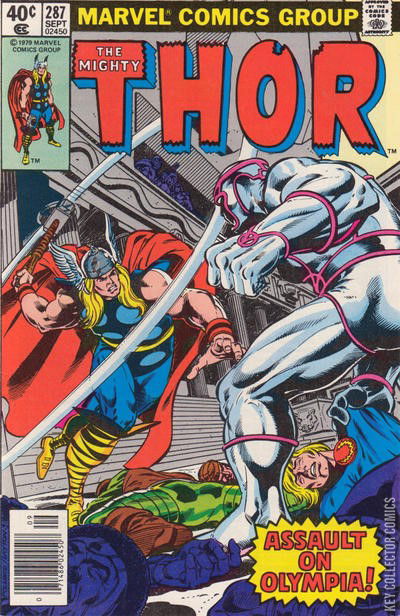 Home / Marvel / Thor / Thor #287 Marvel Released September 1979 Thor #287 Add to Collection Want It Synopsis Issue 162 of 407 Add to Collection Buy it on eBay Buy on eBay Low $1 Mid $2 High $10 Synopsis Details Series Thor Cover Date September 1979 Pages N/A UPC 0714860245009 Cover Price $0.40 Final Order Cutoff N/A Creators No creators listed. Price Guide Log in or subscribe to access detailed graded price information and market insights. Log In Subscribe