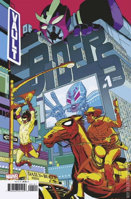 PROLOGUE / THE WEB-SLINGER / FINAL GALAXY BATTLE! / SPIDER-BYTE / SAVAGE SPIDER-MAN Only a Spider-Army can stop the end of the Multiverse! Meet Web-Slinger, the Spider-Man from the Wild West, in an unforgettable story by CULLEN BUNN (X-MEN: BLUE) and JAVIER PULIDO (SHE-HULK) . He is the Emissary from Hell, he is SUPAIDAMAN! The Spider-Man from the live-action SPIDER-MAN show that aired in Japan in the 1970s is back in comics form in an insane story by JED MACKAY (EDGE OF SPIDER-GEDDON) and SHELDON VELLA (DEADPOOL, SPIDER-VERSE) . And that’s just a glimpse into the VAULT OF SPIDERS! SPIDER-GEDDON TIE-IN