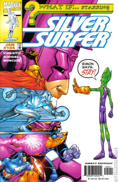 "Finder's Keeper's" - What if the Impossible Man obtained the Infinity Gauntlet? Script by Thomas Virkaitis, pencils by Gregg Schigiel, inks by Steve Moncuse; Loosely based on the Infinity Gauntlet mini-series; Silver Surfer, Galactus, Adam Warlock, Captain America, Thanos, Celestials, Stranger, Master Order, Lord Chaos, Eternity, Eon, the Watcher, and Shalla Bal appear. 38 pgs. Cover price $1.99.