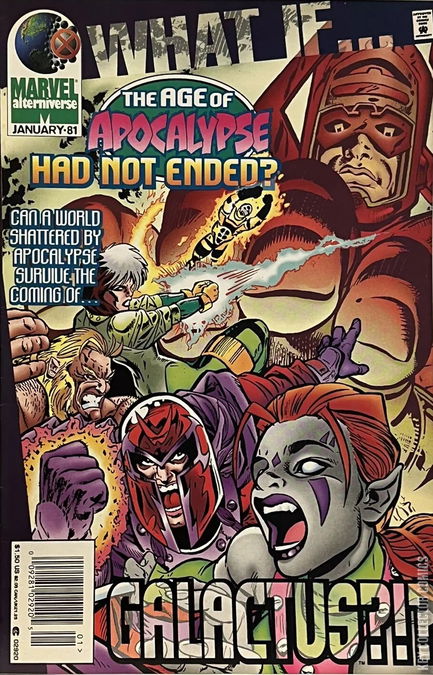 In this Age of Apocalypse the heroes manage to defeat Apocalypse and everything is good until the planet eater, Galactus comes to devour it, while Iron Man and Mangento try fo fight him of and finally Galactus is left mortally injured