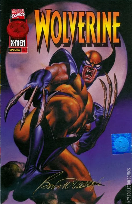A special in-between issue by Fleer. Cover by Boris Vallejo. "Slay-Per-View" written by Dan Slott with art by Mark Buckingham. "Costume Re-Partee" written by Dan Slott with art by Mike Wieringo. Bonus pin-up by Julie Bell. Continuity-wise, the story in Wolverine #102.5 falls between Wolverine #102 and #103. Written by Mark Buckingham with art by Mike Wieringo, this was a mail-away comic for the Fleer trading cards produced for Marvel. The cover was used as art for the Fleer Ultra X-Men set and an interior pin-up was used for the Marvel Masterpiece 1996 set. Why is this such a strange read? Because each page is actually 9 trading cards with each sheet of 9 cards linking together to form a single comic book page--not a 9 panel comic book page--but rather a normal comic book page. Fleer had two requirements for the artist and writer doing the comic. Every card had to feature at least one character, and as many Marvel characters as possible had to appear in the 11 page story. Given these weird parameters, the final "comic" turned out pretty well. And, given the bizarre rules, Mark Buckingham did an excellent job!