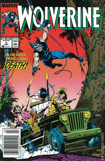 Hunter's Moon!" With help from pilot Archie Corrigan, Wolverine takes out the Harriers in the Golden Triangle and puts the kibosh on General Coy's opium crop. John Bolton art on back cover.
