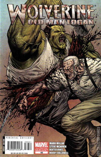 OLD MAN LOGAN, PART 1 Mark Millar and Steve McNiven —who last teamed for the monumental CIVIL WAR —bring us the most important WOLVERINE story of the 21st Century. Nobody knows what happened on the night the heroes fell. All we know is that they disappeared and evil triumphed and the bad guys have been calling the shots ever since. What happened to Wolverine is the biggest mystery of all. For 50 years, no one has heard hide nor hair from him…and in his place stands an old man called Logan. A man concerned only about his family. A man pushed to the brink by the HULK GANG. A man forced to help an old friend—the blind archer, HAWKEYE—to drive three thousand miles to secure his family's safety. Get ready for the ride of your life, Logan.