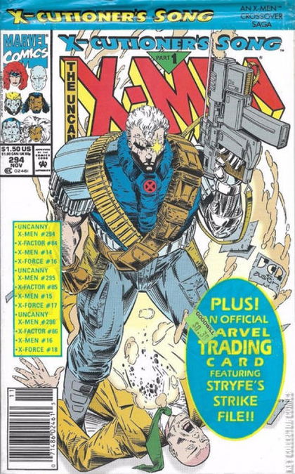 "Overture (X-Cutioner's Song Pt. 1)" X-Cutioner's Song starts with a bang. Professor X delivers a speech after a Lila Cheney concert in Central Park as Gambit and Storm look on. Cable, or someone who looks like him, emerges from the crowd and shoots the Professor and teleports away saying, "The world will know me as the man who saved tomorrow."Elsewhere, Caliban, War, and Famine attack and abduct Cyclops and Jean Grey in the name of Apocalypse.Story continues in X-Factor #84.Mistake: X-Force's home is listed as being in New Mexico. It is really in Arizona.SynopsisArchangel, with a white face, picks up the newly promoted Sergeant Jones in a limo for a date at the park. They are going to see the One World Harmony concert. It doesn't take Archangel long to put on the moves, as the two are soon making out. The driver slyly... 1st Appearance of Caliban as Death (Horseman)