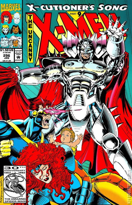 "Crescendo (X-Cutioner's Song Pt. 9)" Continued from X-Force #17. Beast completes surgery on Professor X to remove Stryfe's bullet. Moira tells Beast she broke Stryfe's code in the T-O virus but it only says "You are smart but I am smarter" over and over. Apocalypse, detained in the X-Mansion, suggests that he can save Xavier and Archangel vouches for him.Meanwhile, Stryfe's torture of Cyclops and Jean Grey continues. He presents them with an infant and tells them they if they destroy the child, they will destroy him as well. To Stryfe's amazement, they choose to rescue the child.Cable uses the Professor to find Stryfe on Earth and comes to the conclusion that he's not on the planet. Story continues in X-Factor #86. Having escaped their cell, Cyclops and Jean Grey find themselves cornered by a select few of Stryfe's...