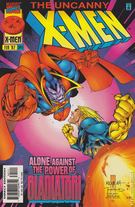 "When Strikes a Gladiator!" On Christmas Eve in New York City, Sam Guthrie thinks of the tragedies of the past year while shopping for his family. Rogue and Joseph take a carriage ride together, and Hank McCoy and his girlfriend, Trish Tilby go to dinner, while Gambit and Bishop each prefer to be alone. In a toy store, Gladiator suddenly attacks Sam, and they battle throughout the neighborhood. Atop the World Trade Center, Joseph demonstrates the device he's finished, one that will enable Rogue to touch others without stealing their memories and abilities. Using a new trick with his kinetic field, Sam bests Gladiator as the rest of the X-Men arrive at the scene. Able to finally request the mutants' aid, Gladiator teleports all but Sam into a Royal Starcruiser...